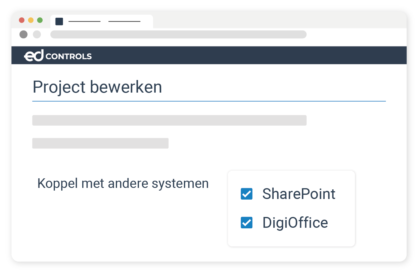 Voor die gebruikers die Microsoft SharePoint en DigiOffice als hun belangrijkste DMS gebruiken, hebben we in Ed Controls een module gemaakt waarmee je gemakkelijk je SharePoint en DigiOffice omgeving koppelt met projecten in Ed Controls. Met deze connector tussen SharePoint en DigiOffice en Ed Controls, zorg je ervoor dat de gebruikers in Ed Controls altijd de nieuwste versies van tekeningen en documenten gebruiken die beschikbaar zijn in jullie eigen DMS.