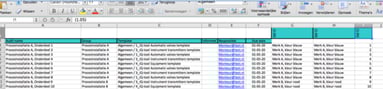 Je ziet hier de unieke titels (kolom A “Audit name”), in welke procesinstallatie die hoort (kolom B “Group”), bij welke Template die hoort (kolom C), wie het moet uitvoeren (kolom E), wanneer (kolom F), informatie bij vraag met de code 1.02 (kolom G), info bij de vraag met de code 1.03 (kolom H) en tenslotte info bij de vraag met de code 1.03 (kolom I).