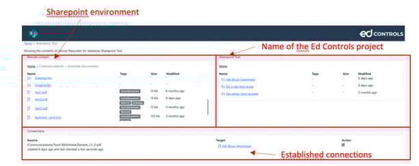 Alle metadata-kolommen die je in SharePoint toevoegt, worden toegevoegd als een label in Ed Controls, alle bestanden die vanuit SharePoint worden gemaakt, hebben ook het label "SHAREPOINT". Op de linker site kun je bestanden filteren op basis van metadata-kolommen, of je klikt op
